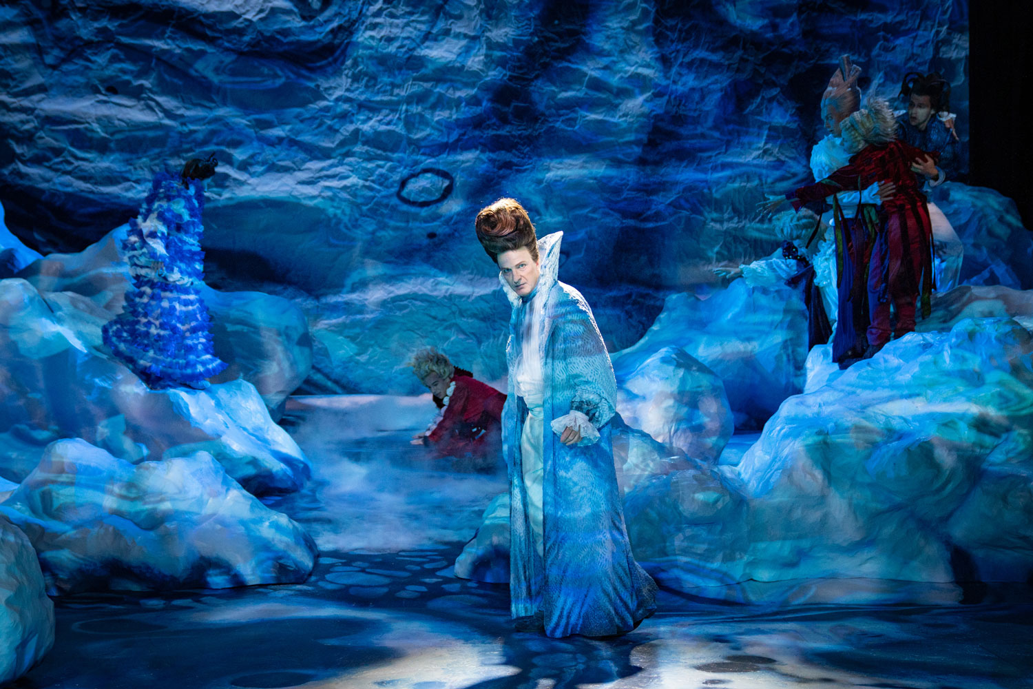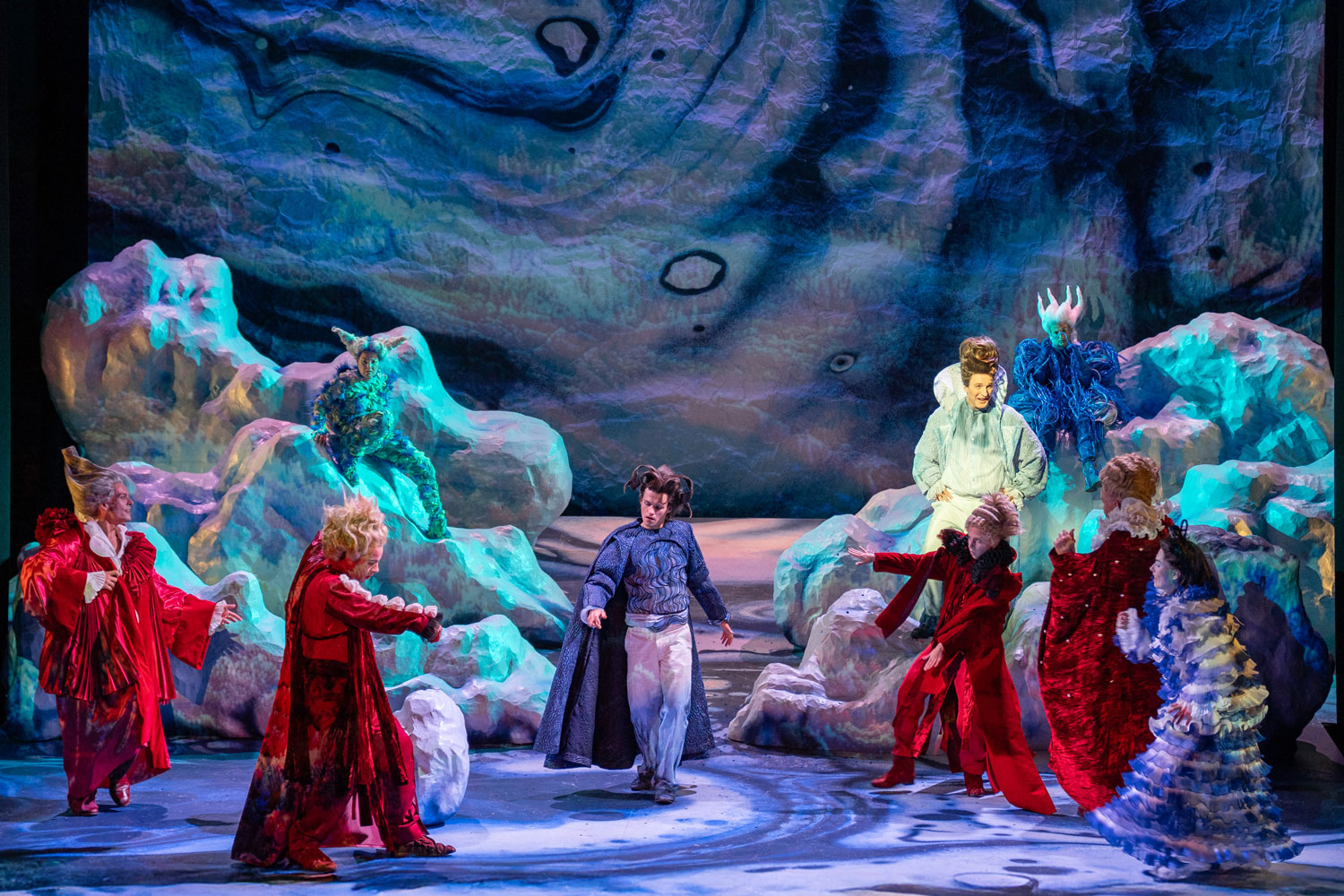 A storm casts an illustrious group ashore on an unknown island, among them the current Duke of Milan, the King of Naples, and his son. Despite the raging elements, all mysteriously survive unharmed, for the ruler of the island, Prospero, endowed with magical powers has conjured the storm according to a plan: deprived of the Duchy of Milan by his brother, he now seeks revenge. Like a director, with the help of the airy spirit Ariel, he scatters the shipwrecked across the island and subjects them to entirely different situations: the King’s son Ferdinand encounters Prospero’s daughter Miranda, and the two fall in love at first sight. Within the circle of the powerful, murderous intrigues unfold. Meanwhile, Caliban, who once ruled the island before Prospero and is now forced to serve him, plots rebellion. Yet Prospero’s plan aims at reconciliation rather than revenge. In what is likely William Shakespeare’s final play, genres intertwine: first performed in 1611, the work begins dramatically, its intrigues reminiscent of tragedy, its wordplay and characters borrowed from comedy, all suffused with the poetic atmosphere of a fairytale.